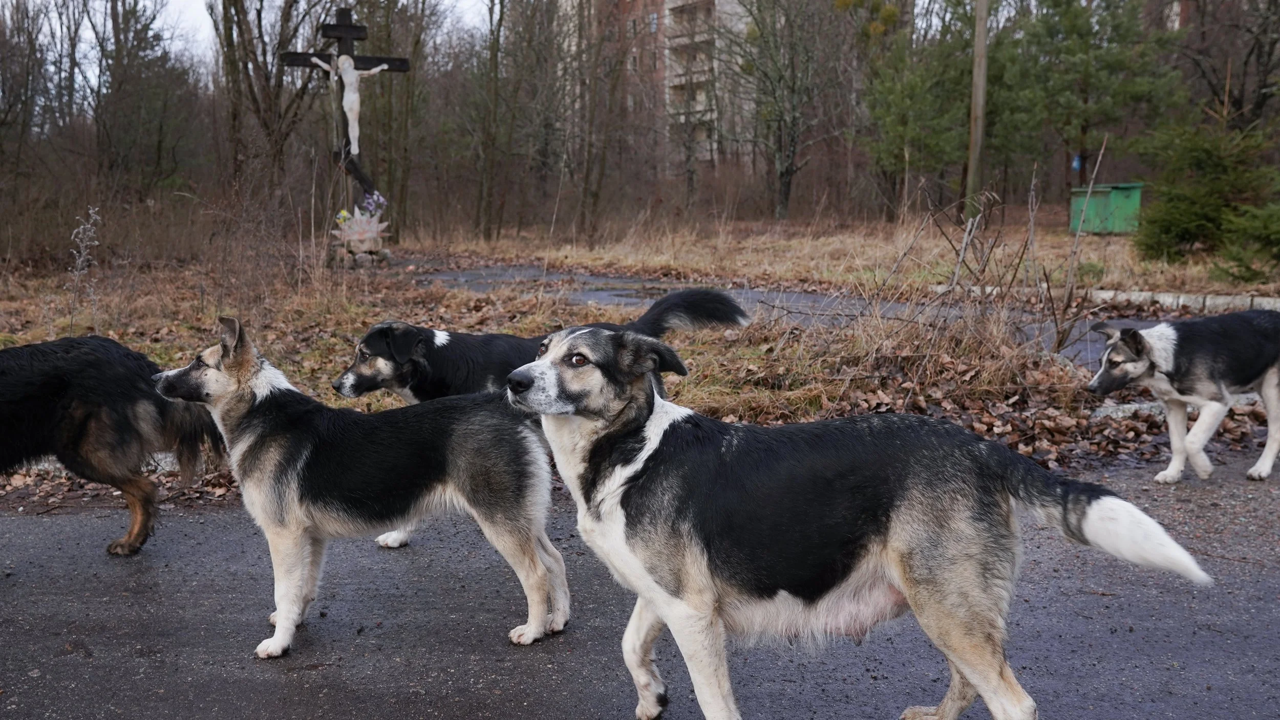 Today, the Chornobyl Exclusion Zone is home to around 550 dogs, descendants of those that were abandoned in 1986. They live in small packs at various checkpoints and human settlements around the Zone where they are fed, sheltered, and cared for by the workers who guard against trespassers, monitor radiation, and maintain the dome covering the compromised ChNPP. The Clean Futures Fund, an NGO, runs spay/neuter, vaccination, and feeding campaigns to ensure the health of dogs living in the Zone today, as well as adoption and rehoming programs.